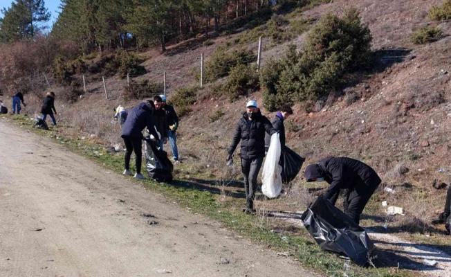 Eskişehir’de üniversite öğrencileri çevre temizliği yaparak 2 saatlik çalışma ile Kocakır ormanında 30 çuval çöp topladı.
