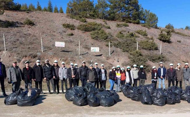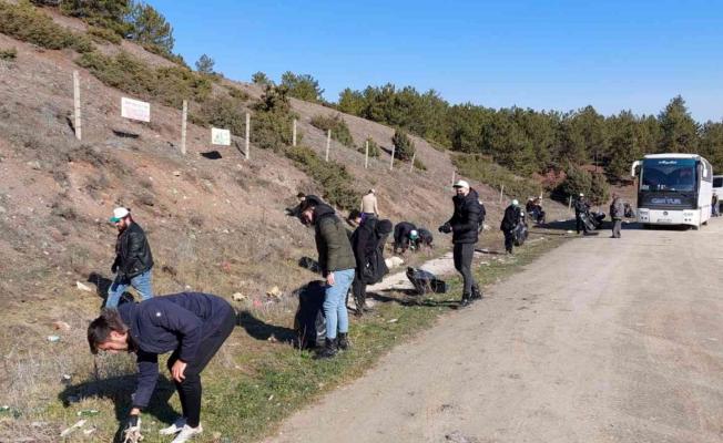 Eskişehir’de üniversite öğrencileri çevre temizliği yaparak 2 saatlik çalışma ile Kocakır ormanında 30 çuval çöp topladı.