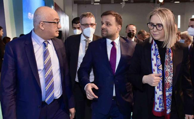 EGEKAF 22’nin açılış töreninin ardından Manisa CBÜ’nün her iki standını ziyaret eden Cumhurbaşkanlığı Dijital Dönüşüm Ofisi Başkanı Dr. Ali Taha Koç ve Rektör Prof. Dr. Ahmet Ataç öğrencilerle sohbet ederek fuarın kariyer imkanlarını araştırmak ve sektör temsilcisi firmalardan bilgi almak isteyen öğrenciler için önemli bir fırsat olduğunu ifade etti.