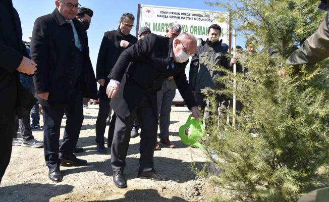 Manisa Valisi Yaşar Karadeniz, Orman Haftası etkinlikleri kapsamında Manisa Orman İşletme Müdürlüğü tarafından organize edilen fidan dikim …
