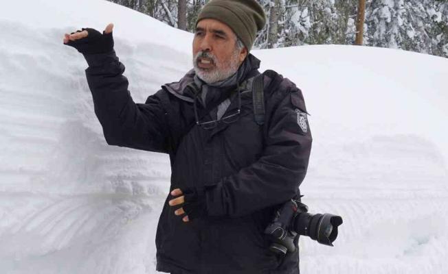 “Kızılcaelma köy yolunda bulunuyoruz. Mart ayının sonuna gelmiş olmamıza rağmen halen karla mücadele ediyoruz. Ben 170 santimetre boyundayım. Şu anda benim boyumu aşan bir kar yüksekliği var. Bu kar, normalde daha yüksek fakat zamanla sıkışmış kardır. Normalde şu anda karın yüksekliği 2 metrenin üzerindedir.”