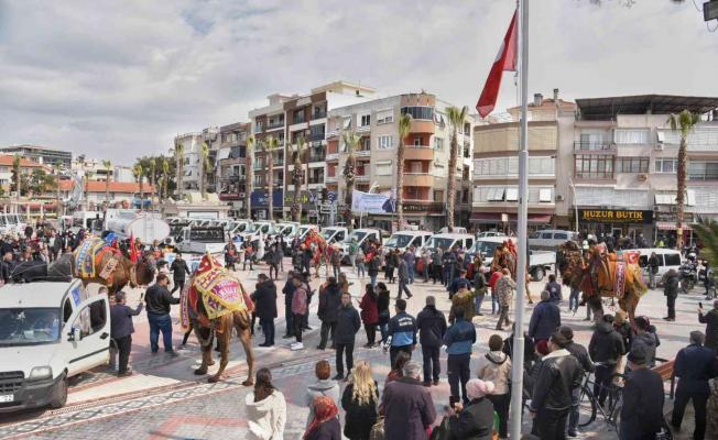 Menemen Belediyesi tarafından geleneksel hale getirilen 10. Geleneksel Türkelli Folklorik Deve Gösterisi, etkinliğe katılacak develerin katıldığı kortejle başladı.