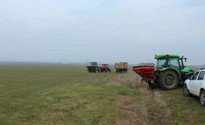 Tekirdağ’ın Hayrabolu ilçesinde mera gübreleme çalışmaları devam ediyor.