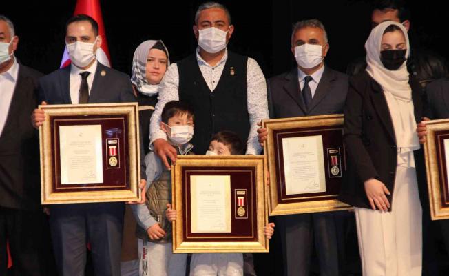 Mersin’de 3 şehit ailesi ve 8 gaziye ‘Devlet Övünç Madalyası ve Beratı’, Vali Ali İhsan Su tarafından verildi. Duygusal anların yaşandığı törende, bazı şehit yakınları ve madalyasını alan gaziler gözyaşlarını tutamadı.