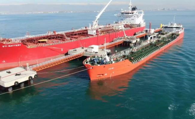 Mersin’e gelen gemiden ayçiçek yağı sevkiyatı başladı