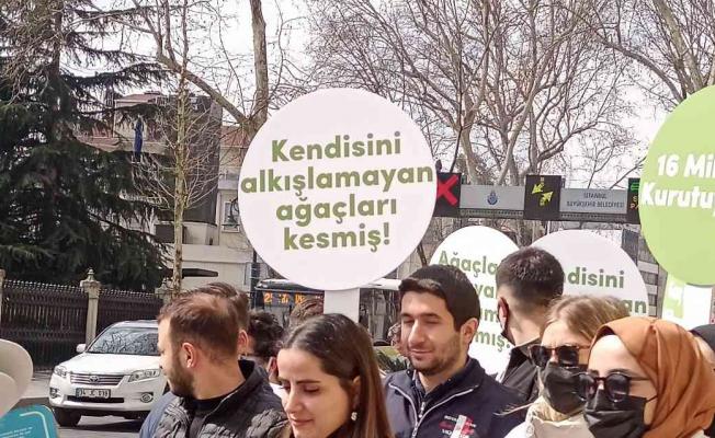 Basın açıklamasının ardından platform yöneticileri ve üyeleri, ağaçların kesilmesine tepki göstermek adına Çırağan Caddesi’ndeki çınarların etrafında temsili bir nöbet tuttular.