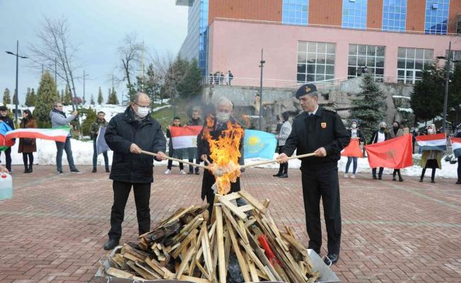 Protokol üyeleri tarafından Nevruz ateşinin yakılmasıyla birlikte bayram coşkusu katlanarak devam etti. Nevruz geleneklerinin olmazsa olmazlarından çekiçle demir dövüldü. Nevruz ateşinin çevresinde halay çeken öğrencilerin yanı sıra geleneksel Nevruz pilavı ikramı, kutlamalarda tam bir şölen havasında kutlandı.