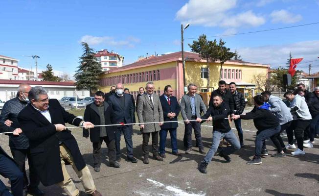 Nevruz ateşinin yakılmasının ardından çeşitli yarışmaların düzenlendiği programında Kaymakam Ferhat Özen’in başında bulunduğu ilçe protokolü, öğrencilerle hala çekme yarışı yaptı.