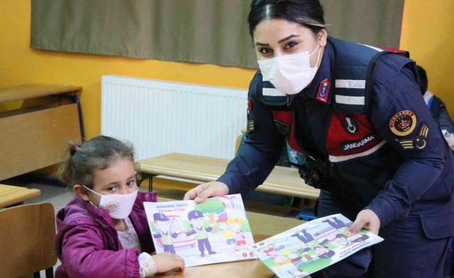 Aksaray’da öğrencilere yönelik çeşitli etkinlikler düzenleyerek trafik kurallarını anlatan jandarma ekipleri, bu kez çizgi film izleterek çocuklara jandarma çalışmalarını ile trafik kurallarını anlattı.
