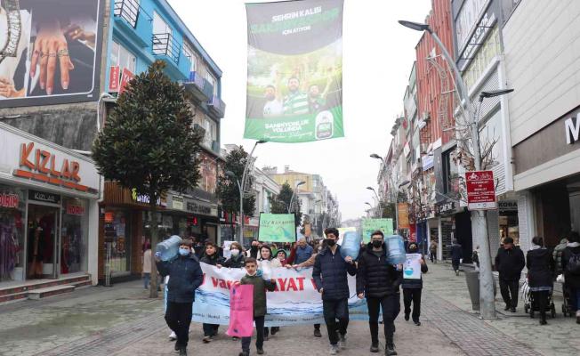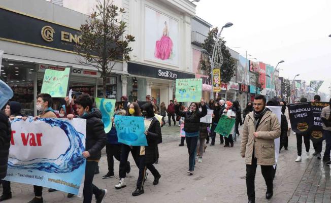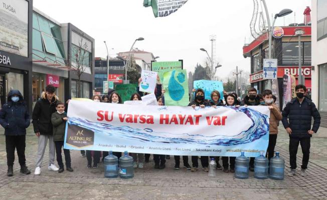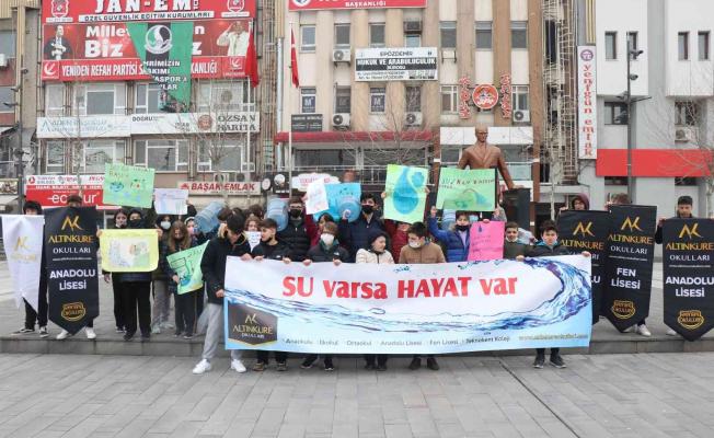 Sakarya Altınküre Okulları öğrencileri, Dünya Su Günü’nde suyun önemine dikkat çekmek için farkındalık çalışması gerçekleştirildi. Dünya genelinde suya ulaşmakta zorluk çeken insanlar başta olmak üzere suyun önemine dikkat çekebilmek için harekete geçen öğrenci ve öğretmenleri pet şişe ve damacanalar ile yürüyüş gerçekleştirdi. Adapazarı ilçesi Çark Caddesi üzerinden başlayan yürüyüş 15 Temmuz Demokrasi Meydanı’nda son buldu. Slogan, pankart ve şişeler ile yürüyüş yaparak su konusunda yaşanan mağduriyeti topluma yansıtmayı amaçlayan öğrencilere, bazı vatandaşlar da destek oldu.