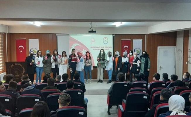 Düzce Jandarma Komutanlığı ekipleri üniversite öğrencilerine jandarmayı tanıttı.