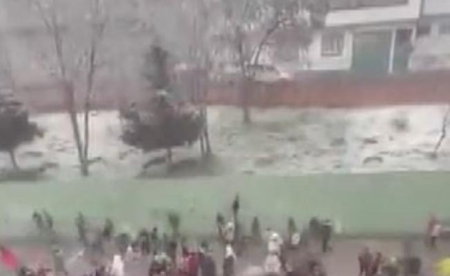Gaziantep’te ortaokul öğrencileri Mart ayında yağan karın tadını teneffüste çalan müzik eşliğinde dans ederek çıkardı. O anlar cep telefonu kamerasıyla kaydedildi.