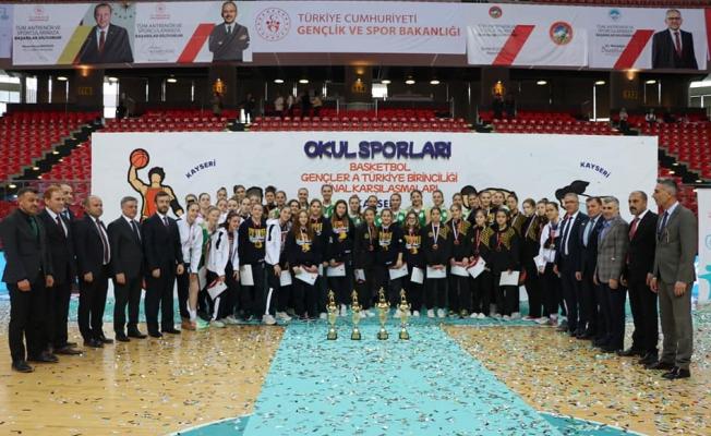 Gençlik ve Spor Bakanlığı ve Milli Eğitim Bakanlığı işbirliği ile düzenlenen Okullar Arası Basketbol Gençler A Kategorisi Türkiye Birinciliği Turnuvası’nda şampiyonlar dün belli oldu. 22-26 Mart tarihleri arasında Kayseri’de düzenlenen turnuvaya Türkiye’nin farklı illerinden 8 erkek ve 8 kız olmak üzere toplam 16 takım katıldı. Yapılan müsabakaların sonunda kızlarda şampiyon olan Özel Haliç Doğa Bilim Anadolu Lisesi ve erkeklerde şampiyon olan Özel Şişli Bilim Doğa Anadolu Lisesi, 20-28 Eylül tarihlerinde Sırbistan’da düzenlenecek olan Okullar Arası Dünya Basketbol Şampiyonası’nda Türkiye’yi temsil edecek. Atatürk Spor Salonu ve Kadir Has Spor Merkezinde yapılan şampiyona birbirinden çekişmeli ve heyecanlı final müsabakaları ile son buldu. Kadınlar finalinde rakibi Özel Tema Anadolu Lisesi’ni mağlup eden Özel Haliç Doğa Bilim Anadolu Lisesi şampiyon oldu. Erkeklerde ise Özel Şişli Bilim Doğa Anadolu Lisesi rakibi Özel Bursa Özlüce Doğa Anadolu Lisesi’ni mağlup ederek şampiyonluğu göğüsledi.