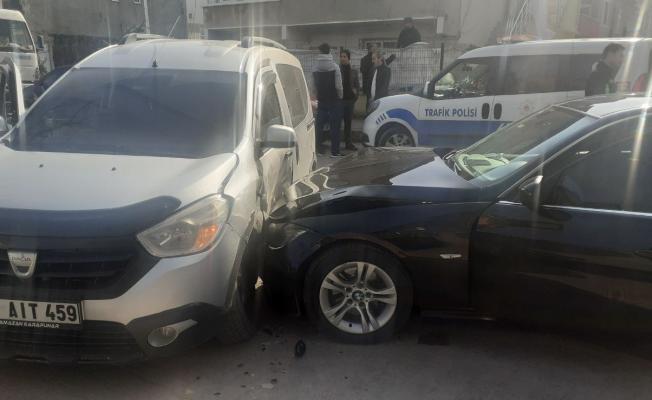 Otomobil ile hafif ticari araç çarpıştı, sürücüler birbirine girdi