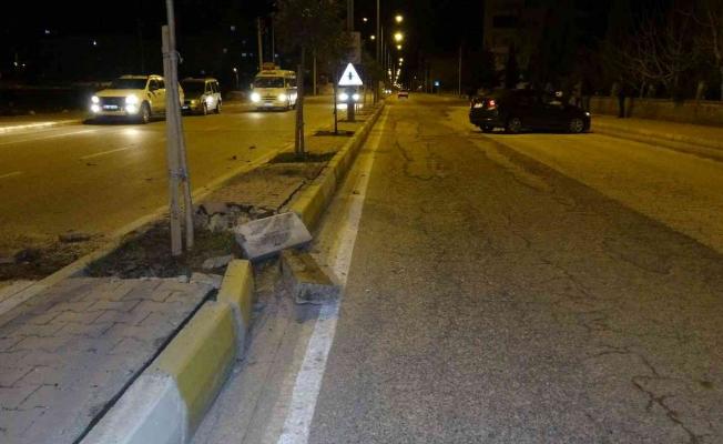 Otomobille köpeğe çarpmamak için refüje çarptı