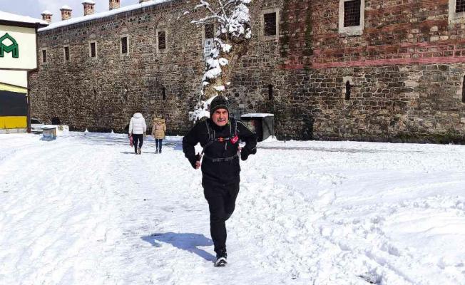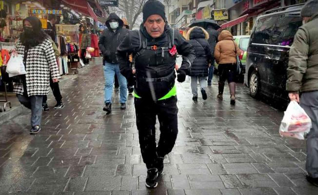 (Özel) Kar kış dinlemiyor; her gün işten evine koşarak gidiyor