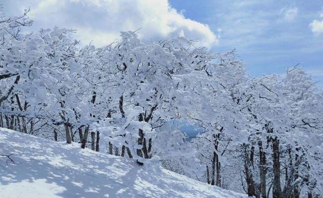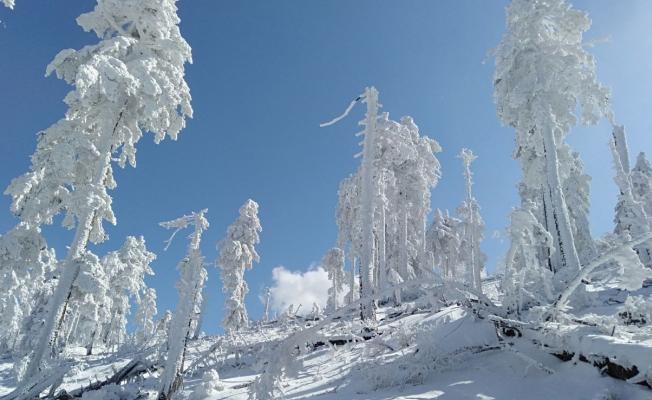 Aybar kar fırtınasının yoğun bir şekilde etkili olduğu Kazdağları’nda özellikle ağaçların üzerinde biriken karlar seyri doyumsuz bir manzara sundu.