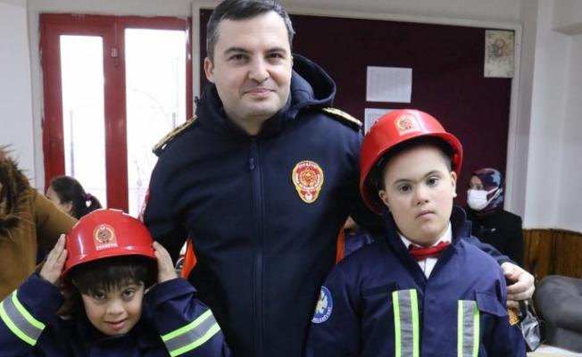 Manisa Büyükşehir Belediyesi İtfaiye Daire Başkanlığı 21 Mart Dünya Down Sendromu Farkındalık Günü’nde özel öğrencileri ağırladı. İtfaiye kıyafeti giyerek itfaiye aracına binen öğrenciler daha sonra İtfaiye Daire Başkanı Gürhan İnal’ın yardımıyla itfaiye aracıyla su sıkmanın mutluluğunu yaşadı.
