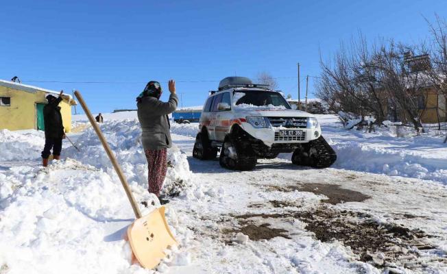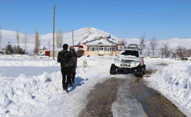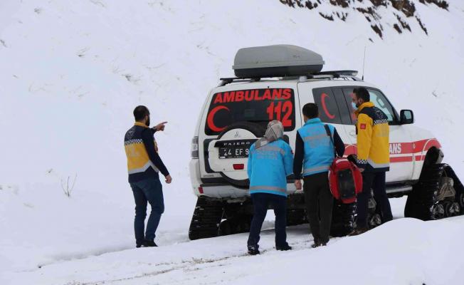 112 Acil Sağlık ekipleri, Erzincan’da kar, tipi ve dondurucu soğuklara rağmen paletli ambulanslarla kırsalda yaşayan 55 vatandaşa ulaştı.