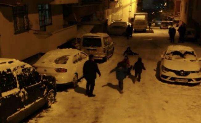 İstanbul’da kent genelinde kar yağışı etkisini arttırmaya devam ediyor. Yoğun kar yağışı hayatı olumsuz etkilerken çocuklar, karın keyfini çıkarmak için sokakları doldurdu. Sokaklarda buluşan çocuklar, sokakları kayak pistine çevirdi. Çocukların ve ailelerin gece saatlerinde ellerine aldığı büyük tepsilerle kayması renkli görüntülere sahne oldu. Renkli görüntülerin yaşandığı o anlar havadan dron ile görüntülendi.