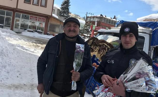 Polis ve jandarma ekipleri yaşlılara karanfil armağan etti