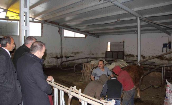 Tarım ve Orman Bakanlığı tarafından uygulamaya konulan Etçi ve Kombine Irkların Yaygınlaştırılması Projesi (ETKİYAP) dahilinde Simental ve Montofon ırklarını tohumlama uygulamasında ilk buzağıların doğmaya başladığı ilçede Kaymakam Meriç Dinçer, İlçe Tarım ve Orman Müdürü Ufuk Ateş, Ziraat Odası Başkanı Zeki Şimşek ile birlikte buzağı sahiplerini ziyaret etti. 6 farklı hayvancılık işletmesini ziyaret eden Dinçer, son olarak gittiği Hasan Hüseyin Yılmaz’a ait işletmede buzağı doğumuna tanıklık etti.