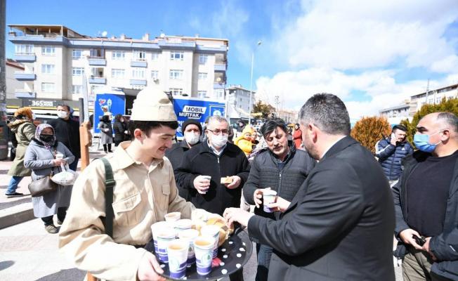Türk milletinin küllerinden yeniden doğduğu büyük bir kahramanlık destanı olan Çanakkale Zaferinin ruhunu yaşatmanın herkesin görevi olduğunu belirten Çetin, ‘‘Cuma Namazı sonrası hemşehrilerimize, üzüm hoşafı ve bir dilim ekmek ikram ettik. Çanakkale Savaşında asker karavanası buydu. Askerlerimiz bazen bir günde bir öğünü bile bulamıyordu. Bugün ülkemiz ise refah içerisinde ise bunu şehitlerimize borçluyuz. Bize bu cennet vatanı emanet eden tüm şehitlerimizin ruhları şad olsun’’ ifadelerine yer verdi.