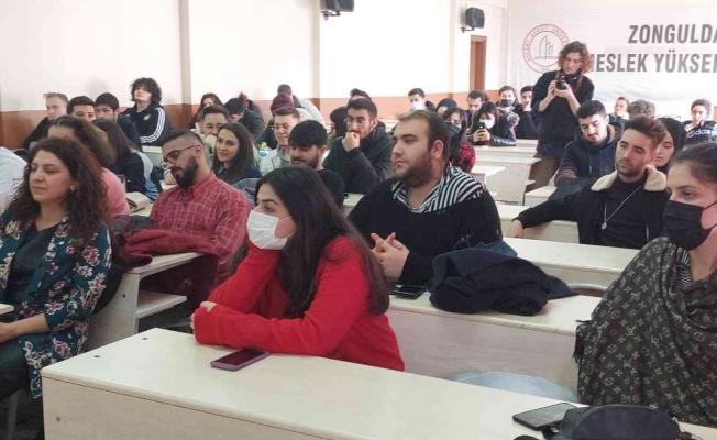 ZMYO Kilimli Kampüsü’nde, Görsel İşitsel Medya Okuryazarlığı bölümü öğrencilerine, Zonguldak Gazeteciler Cemiyeti Başkanı Derya Akbıyık ve İz Medya Prodüksiyon Yöneticisi Yeşim Çakır “Habercilik ve Meslek Etiği” isimli seminer verdi. Seminer de gazetecilik alanı ile ilgili konuşma yapan Akbıyık, mesleğin avantajlı ve dezavantajlı yönleri hakkında öğrencileri bilgilendirerek, gazetecilik mesleğinin önemine değindi.