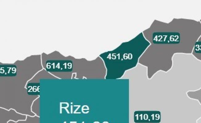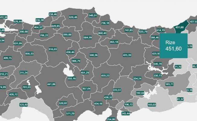 Sağlık Bakanı Fahrettin Koca, 26 Şubat-4 Mart arasında, il bazında 100 bin kişi içinde bir haftalık toplam yeni Covid-19 vaka sayısını gösteren insidans haritasını paylaştı. Verilere göre Rize’de vaka sayısı yüz bin kişide 451,60 oldu.