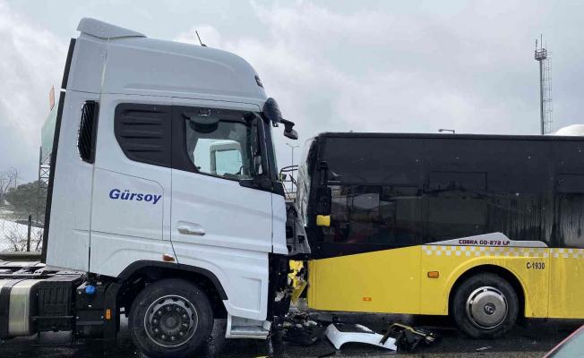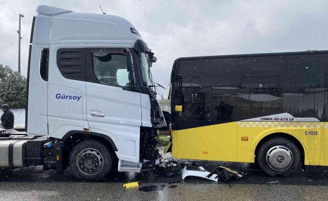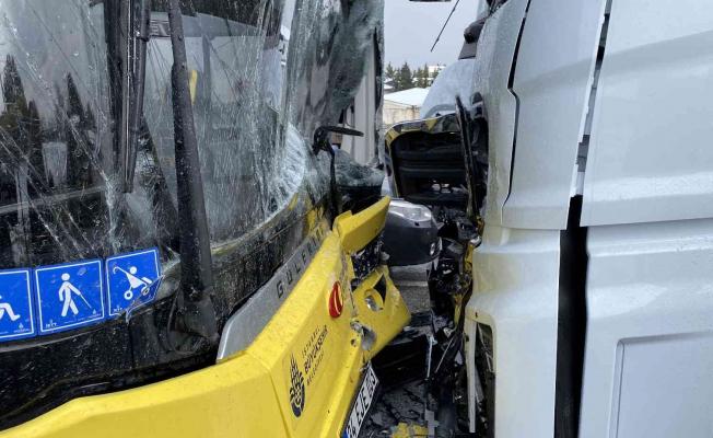 Sancaktepe’de cadde üzerinde ters istikamette seyir halinde olan tır ile İETT otobüsü kafa kafaya çarpıştı. Kazada İETT otobüsü şoförü yaralandı.