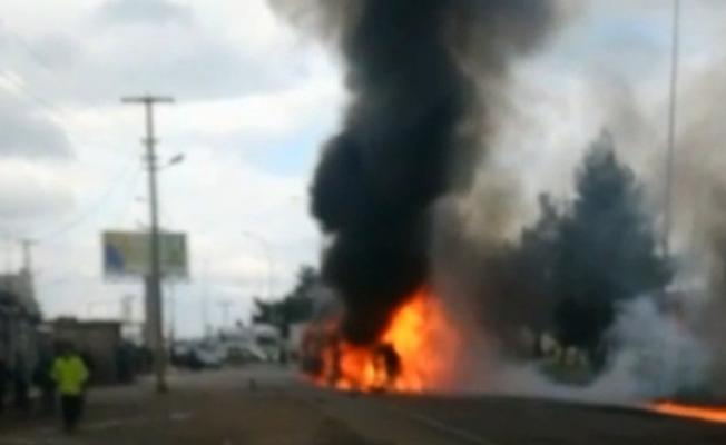 Tırdaki patlama ve yangın, cep telefonu ile güvenlik kameralarına yansıdı. Polis bölgede önlem alırken, itfaiye ekipleri de yangına müdahale etti. Yaklaşık bir saatlik çalışmanın ardından söndürülen yangın sonrası tır kullanılamaz hale geldi.
