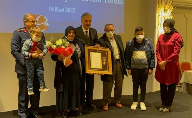 Eskişehir’de geçekleşen törende 3 şehit ailesine ve 2 gaziye Devlet Övünç Madalyası veridi.