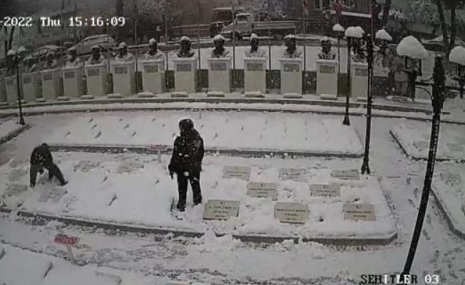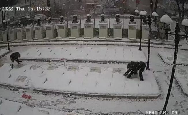 Geçtiğimiz hafta Çan ilçesinde yağan kar yağışı sonrası Çanlı Gaziler, Şehitler ve Türk Devletleri anıtının sembolik mezar taşlarının karla kaplanması sonucu şehitliğe gelen 2 kardeş, mezar taşlarını kardan temizledi. Kardeşlerin isimlerin okunmasını sağlamaları güvenlik kameralarına yansıdı.