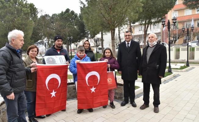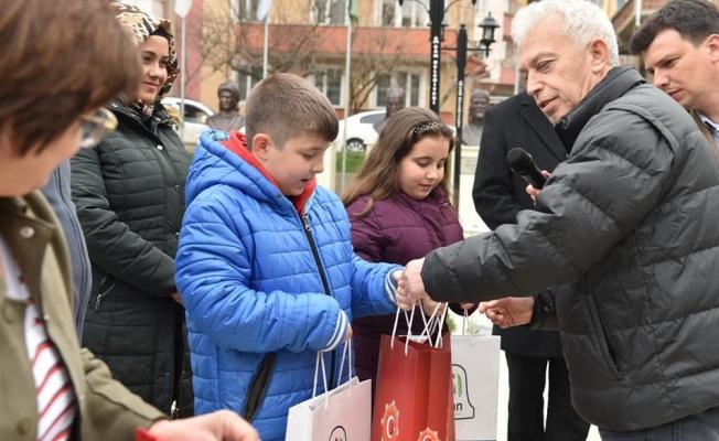Çan Belediye Başkanı Bülent Öz ve Şehit ve Gazi Aileleri Derneği Başkanı Nail Eker tarafından çocuklara ve ailesine hediye verildi.
