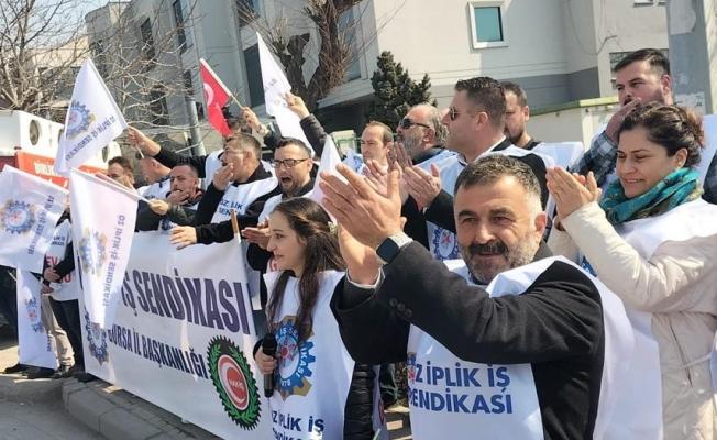 Bursa’da sendikaya üye olan işçilere baskı yaptığı iddia edilen fabrika önünde sendika temsilcileri açıklama yaptı.
