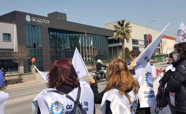 Bursa’da sendikaya üye olan işçilere baskı yaptığı iddia edilen fabrika önünde sendika temsilcileri açıklama yaptı. Acarsoy Tekstil Tic. San. A.Ş …