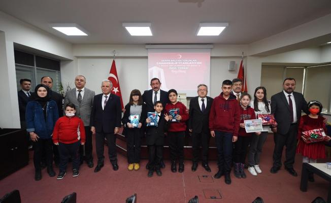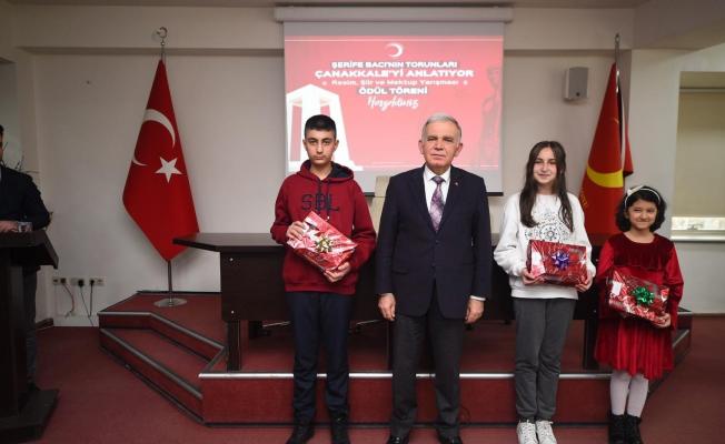 Çanakkale Zaferi’nin 107. yılı etkinlikleri çerçevesinde ‘Şerife Bacı’nın Torunları Çanakkale’yi anlatıyor’ teması ile Kastamonu Belediye Başkanlığı ve İl Milli Eğitim Müdürlüğü işbirliğinde düzenlenen resim, şiir ve mektup yarışmasında dereceye girenlere ödülleri verildi.