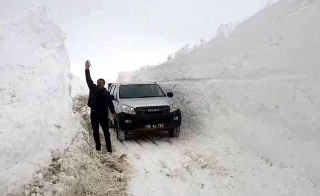 Kar kalınlığının 5 metreyi aştığını kaydeden yetkililer, köy yolunda çalışmaların çift vardiya devam ettiğini, en kısa zamanda köy yolunu ulaşıma açacaklarını ifade etti.