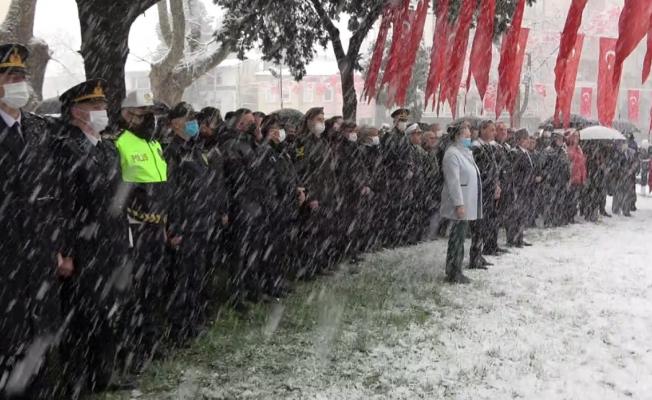 Sinop’ta yoğun kar altında 18 Mart töreni