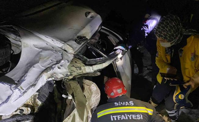 Otomobil içerisinde sıkışan yaralı sürücü Sivas Belediyesi İtfaiye ekiplerinin çalışmalarıyla sıkıştığı yerden kurtarıldı.