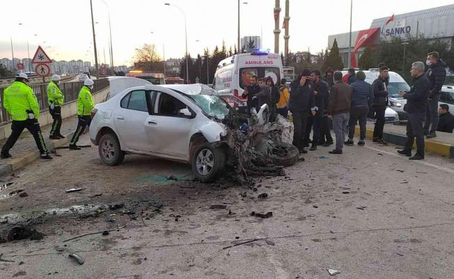 Gaziantep’te direksiyon hakimiyetini kaybederek yön levhasına çarpan ve olay yerinde hayatını kaybeden otomobil sürücüsünün feci kaza anının görüntüsü ortaya çıktı.