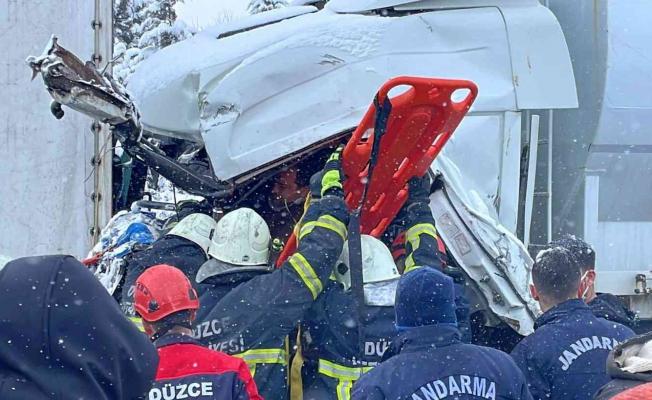 TEM Otoyolu Düzce kesiminde tırların da karıştığı zincirleme kaza meydana geldi.