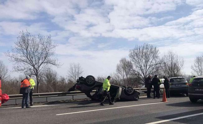 TEM’de tıra çarpan otomobil takla attı