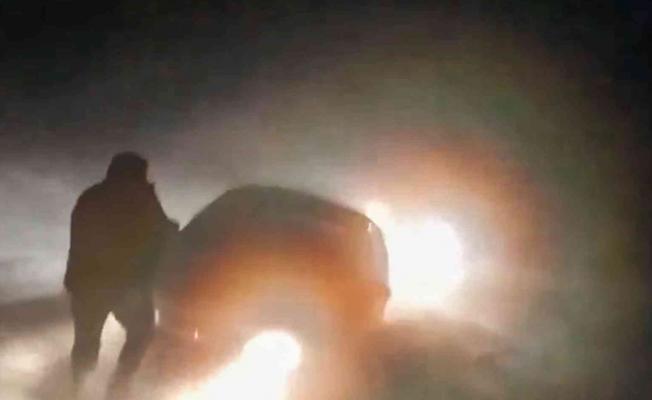 Ardahan’da yoğun kar yağışı ve tipi nedeniyle sürücüler zor anlar yaşadı. Kara saplanan araçlar köylüler tarafından traktör yardımıyla kurtarıldı.