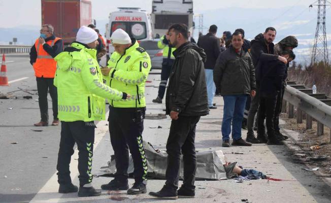Kazada Muharrem Durhan olay yerinde yaşamını yitirirken, tırın parçaları ise otoyolda metrelerce uzağa savruldu.
