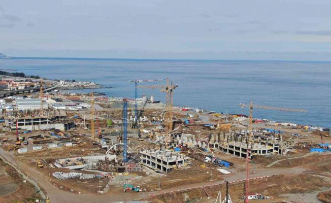 Trabzon’un Ortahisar ilçesi Akyazı mevkiinde Şenol Güneş Spor Kompleksi’nin yanındaki dolgu alanında kamu imkanları ile yapımı süren 900 yataklı Şehir Hastanesinin yapım çalışmaları sürüyor. Hastane inşası kapsamında deniz dolgusuna 4 bin 416 fore kazık çakılması işlemi büyük ölçüde tamamlanırken, hastane inşaatı da yükselmeye başladı. Hastanenin betonarme kısmının Ağustos ayına kadar bitirilmesi hedefleniyor.