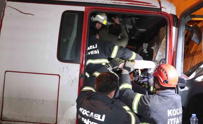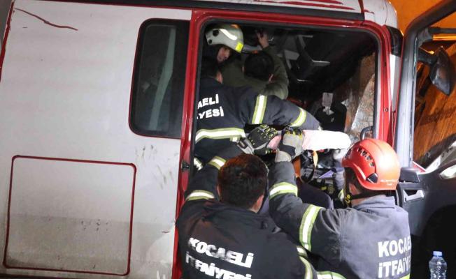 Çarpışmanın şiddetiyle kamyon içinde sıkışan sürücü, itfaiye ekiplerinin müdahalesiyle çıkarıldı.