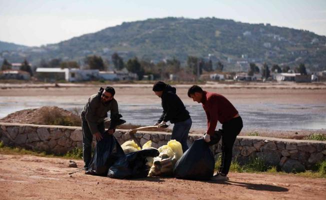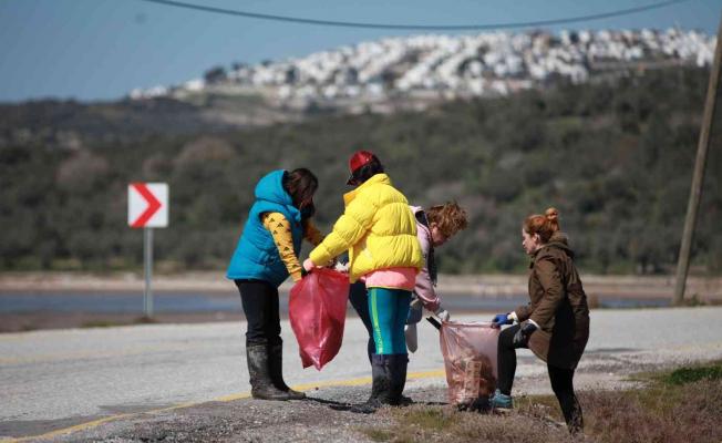 Bodrum – Milas karayolu üzerinde bulunan Boğaziçin Tuzla Sulak Alanı, sosyal medya üzerinden organize olan bir grup çevre gönüllüsü tarafından çevre temizliği yaptı. Flamingolarıyla ünlü 250’ye yakın kuş türüne ev sahipliği yapan Boğaziçi Bargilya Tuzla Sulak Alanı’ndaki çevre kirliliğine duyarsız kalmayan gönüllüler sabah saatlerinde alana giderek temizliğe başladı. Eski yağhane binasında bir araya gelen grup, ilk olarak tarihi binanın çevresinde temizlik gerçekleştirdi. Daha sonra Boğaziçi mevkiine giden yolun her iki tarafında çevreye gelişi güzel atılan çöpleri temizleyen grup, yaklaşık 2 saatte 33 poşet çöp topladı.