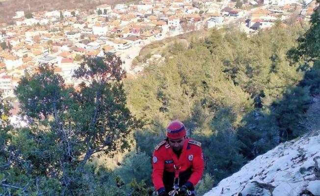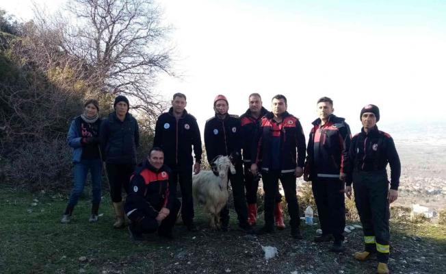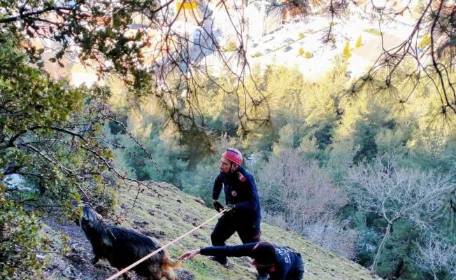 Uçurumda mahsur kalan 4 keçi kurtarıldı