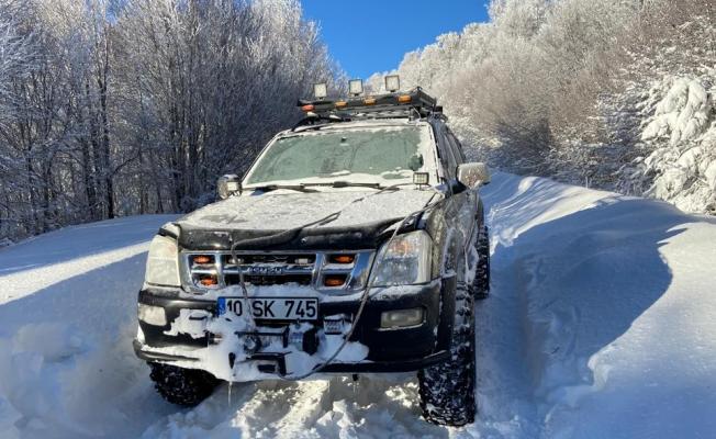 Balıkesir’de kar kalınlığının yaklaşık 2 metreyi bulduğu Ulus Dağı’nda mahsur kalan off-roadçının yardımına diğer off-road ekipleri koştu.